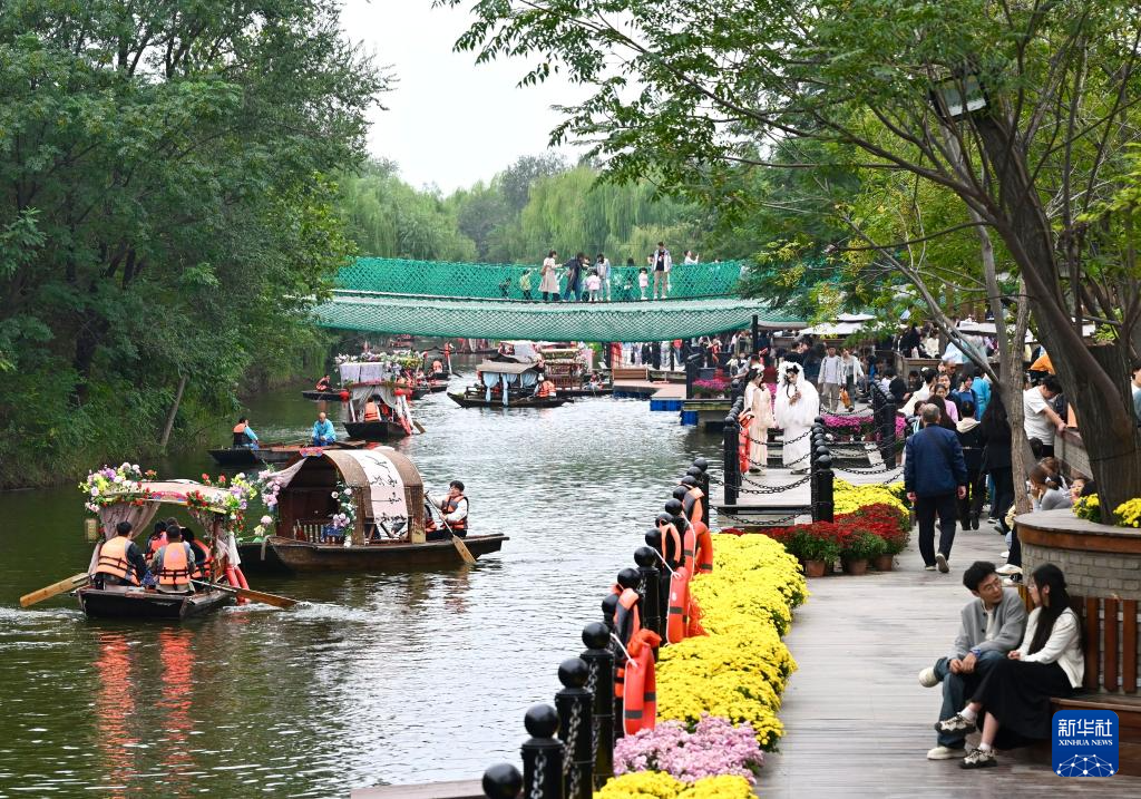 10月7日,游客在河南省开封市万岁山武侠城游玩。(图源:新华网)