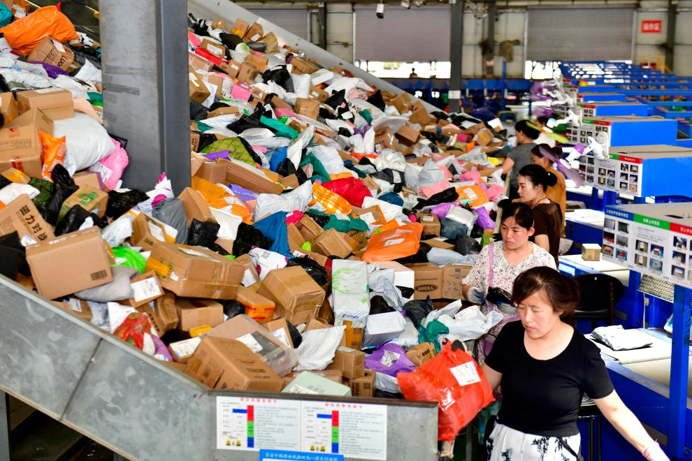 山东省曹县电商物流快递分拣。新华社记者 郭绪雷 摄